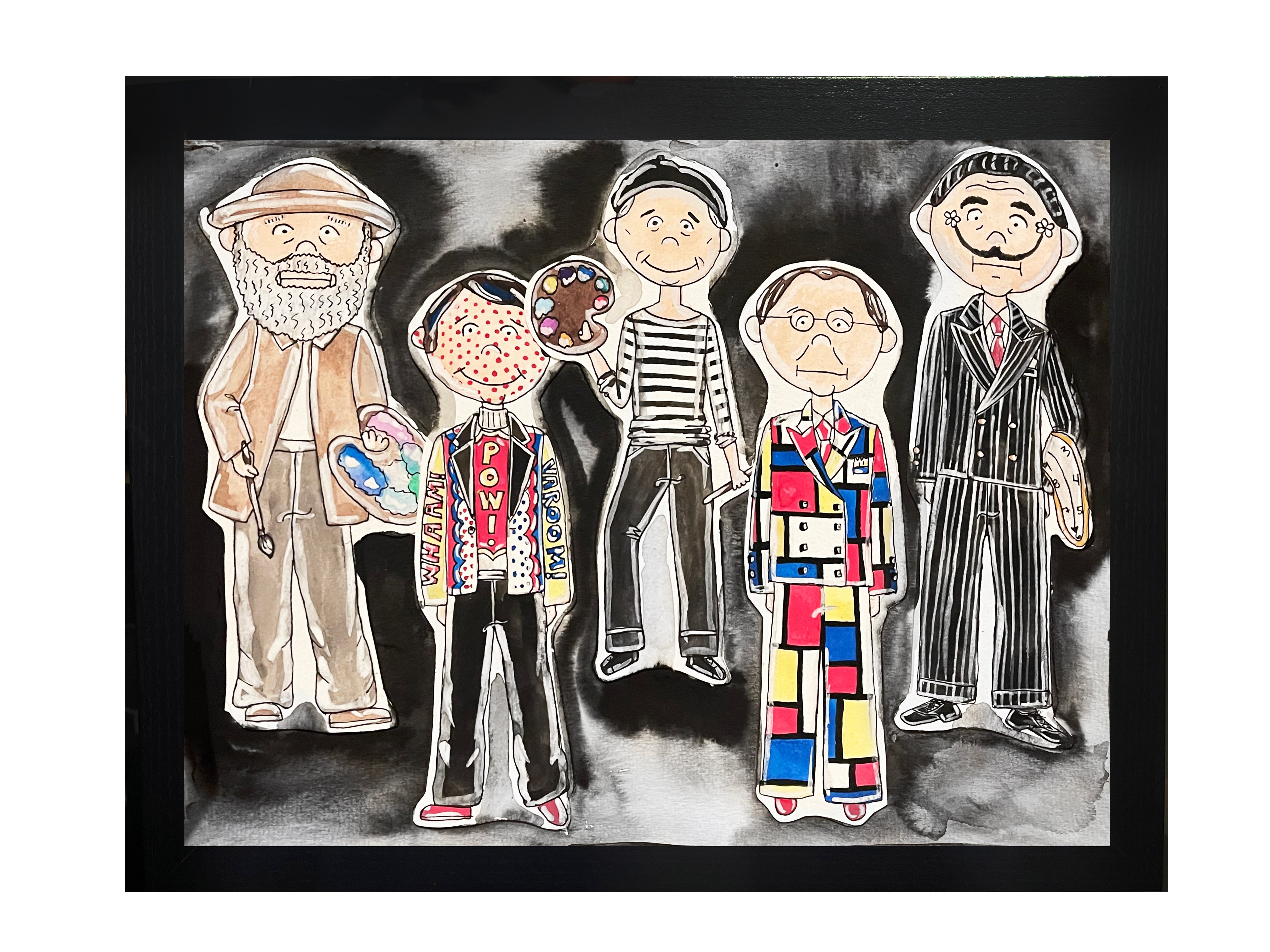 This is an original collage watercolor painting of multiple artist icons illustrations on watercolor paper by KahriAnne Kerr. Size 11” x 14”. One of a kind original painting.