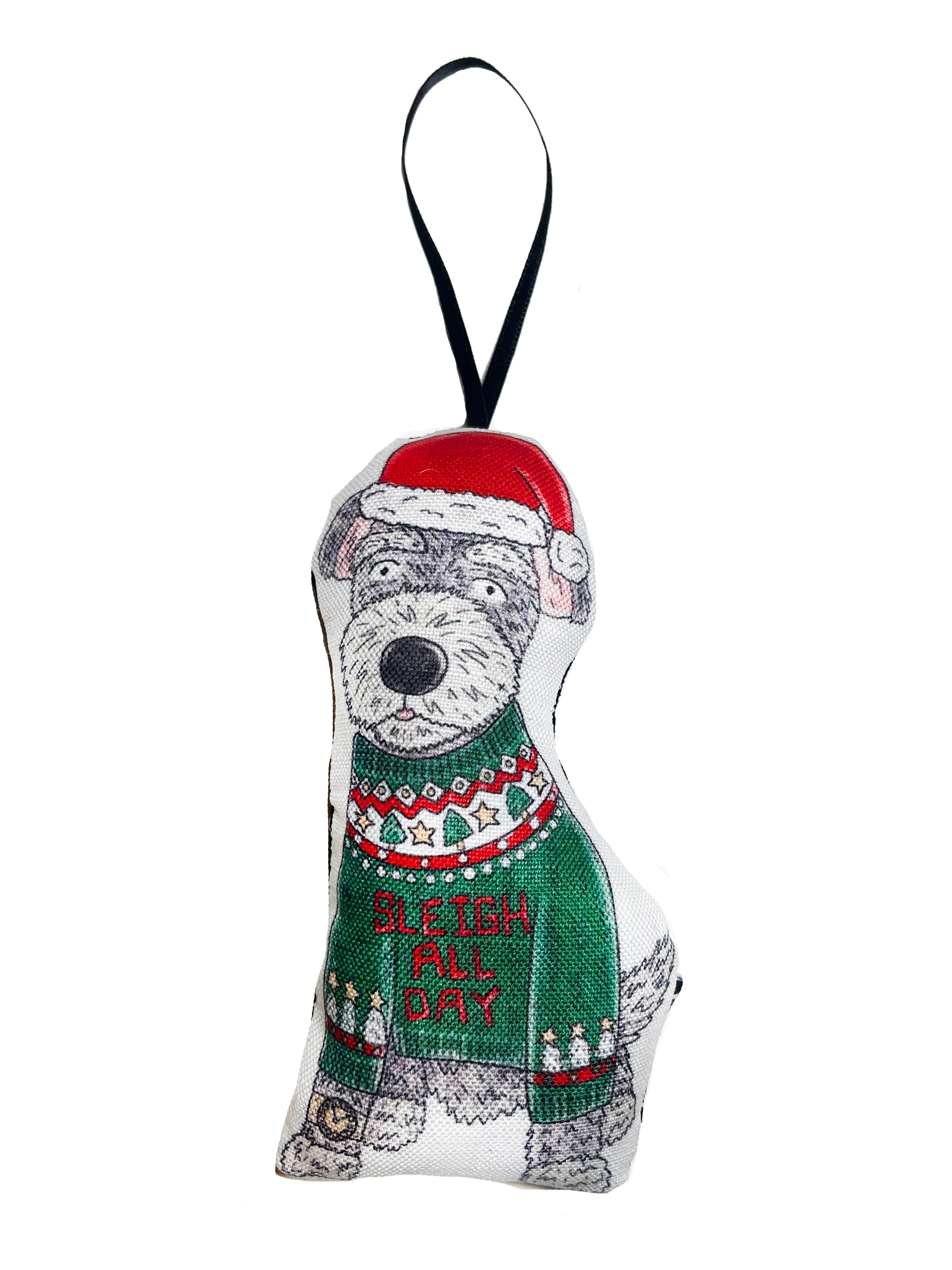 Original watercolor painting illustration artwork by KahriAnne Kerr printed on Linen/Cotton Canvas with solid black linen back and filled with poly fiber fill to create a cute mini fashion doll. 3" black satin loop to hang onto the tree or anywhere. 5" high doll.