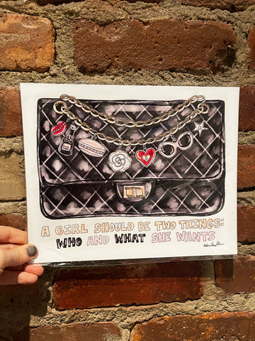 Art Print made of matte cardstock with original illustration by KahriAnne Kerr. Hand embellished with glitter. Size: 8"w x 10"h. Packed with chipboard in clear sealed pouch.
